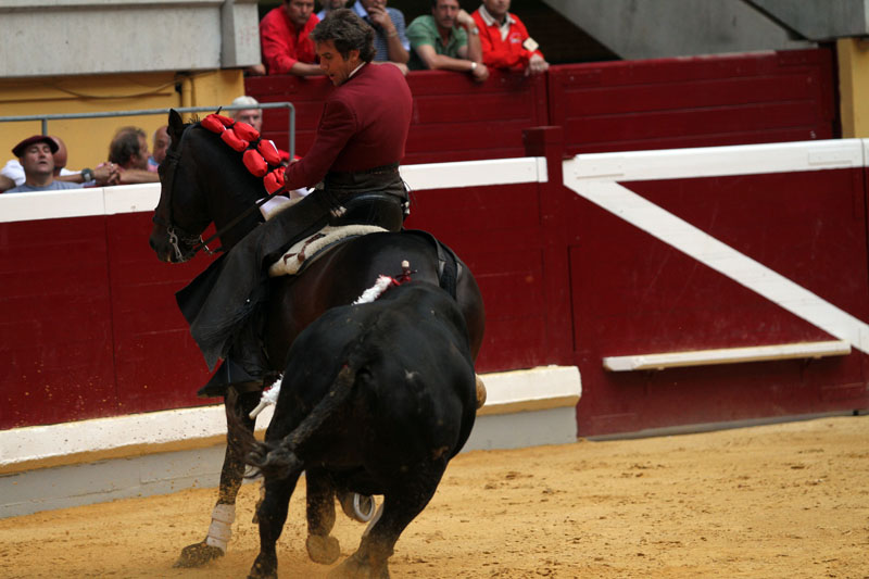 Pablo Hermoso de Mendoza compuso a lomos de ‘Chenel’ una sinfonía descomunal, una obra de arte auténtica, una demostración total y absoluta de las razones por las que la historia lo recordará como el mejor torero a caballo de todos los tiempos, como el creador de un lenguaje único basado en la autenticidad, en el equilibrio de fuerzas, en la distancia justa y precisa para citar al toro sin la más mínima ventaja para llevarlo sometido en unos imaginarios vuelos que en realidad son las anatomías de sus caballos. Y exactamente eso hizo ayer el navarro en una de las actuaciones más prodigiosas de su carrera en Logroño, una verdadera lección de ductilidad y mando, de dulzura para consentir al toro, y de sometimiento para el desarrollo de su lidia en el damero infinito del ruedo: colocación, distancias, conocimiento de las querencias y de que es absolutamente necesario ofrecer el corazón por derecho para arrebatarlo después con guapeza y exactamente en el último suspiro. Y ahí el más grande, Hermoso de Mendoza, cuenta con un aliado memorable: ‘Chenel’, el precioso castaño hijo de ‘Gallo’, el tremendo caballo que ayer se entregó sin medida para hacer diabluras, para acometer el toreo como sólo se ha visto con el jinete navarro: banderillas casi caminando lentamente para llegar al supremo momento de la batida lo más ajustado posible y con la suprema verdad del toreo de frente, galopes de costado ofreciendo el alma para meterse por dentro escamoteando al toro en el último momento su grupa haciéndola invisible; es decir, lo que Domingo Ortega describió como cargar la suerte al mismísimo Ortega y Gasset en el Ateneo de Madrid, pero montado en un caballo; es decir, torear, sentir como se detiene tiempo, como se saborea la bravura hasta el final, hasta el aliento definitivo del morlaco. Pablo dio una lección que va mucho más allá de las orejas en una faena que era de rabo, una faena memorable y que sólo el descabello apartó al navarro de la Puerta Grande , la misma que saboreó Leonardo Hernández y que se le resiste al calagurritano Sergio Domínguez, que sigue sin superar su particular síndrome con la espada. Leonardo Hernández se metió al público en el bolsillo en dos faenas que fueron de menos a más y que lograron su máxima intensidad en los alardes, las piruetas y las banderillas al violín. Perfecto, pero yo me quedo con ‘Chenel’ su toreo con alma.